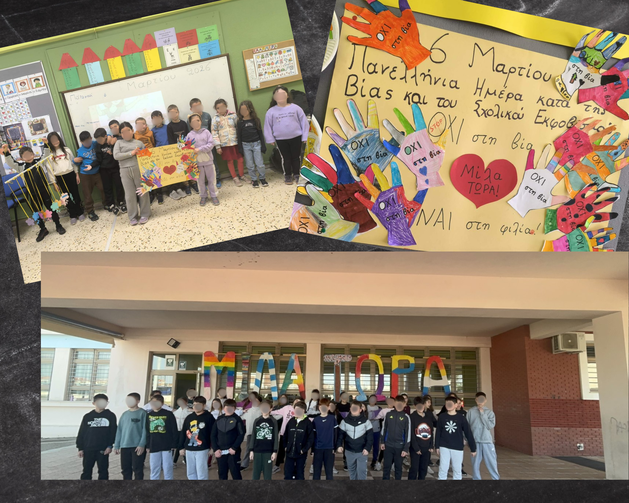 Στις 6 Μαρτίου είπαμε ΟΧΙ στο σχολικό εκφοβισμό. Τραγουδήσαμε για χέρια που προστατεύουν, αλλά και για άλλα που πληγώνουν. Φτιάξαμε αφίσες και κολάζ για τη