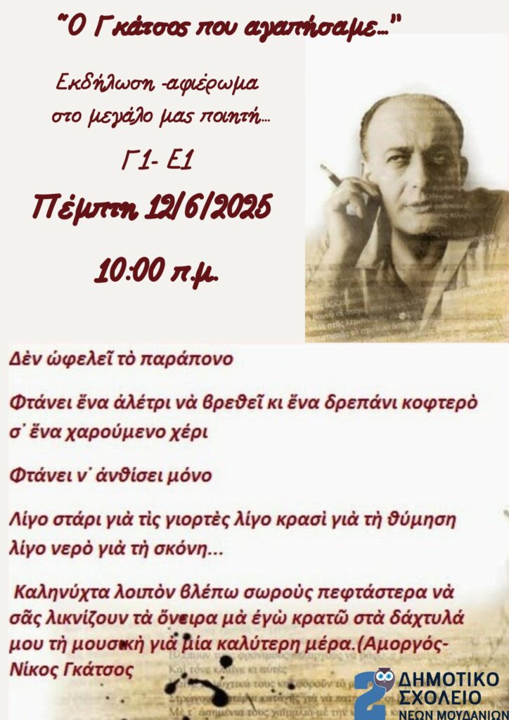Μουσικό Αφιέρωμα στον Νίκο Γκάτσο από τους μαθητές του Γ1 και του Ε1