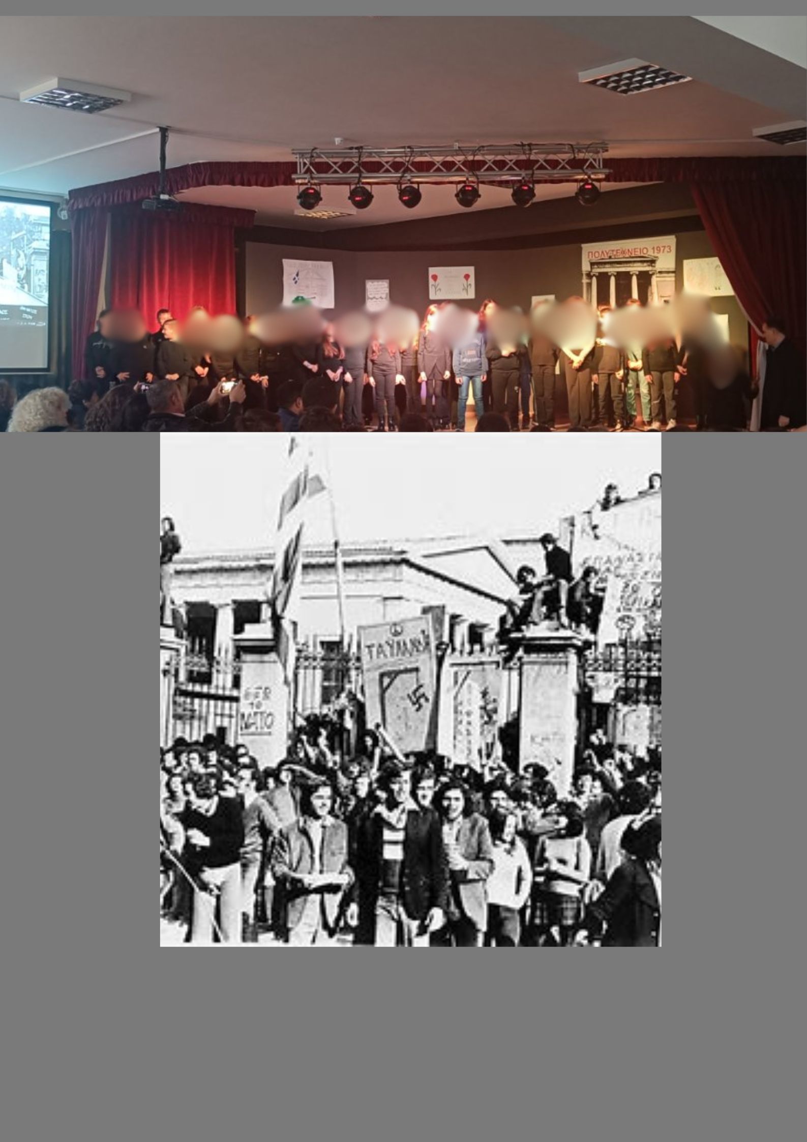 Με επαγγελματική επιδεξιότητα οι μαθητές μας έπαιξαν αυτοτελή μονόπρακτα έργα και τραγούδησαν έργα μεγάλων Ελλήνων καλλιτεχνών που ταυτίστηκαν με τις μαύρες εκείνες μέρες της ιστορίας μας.
